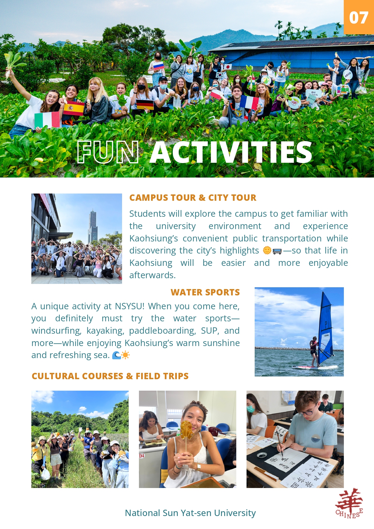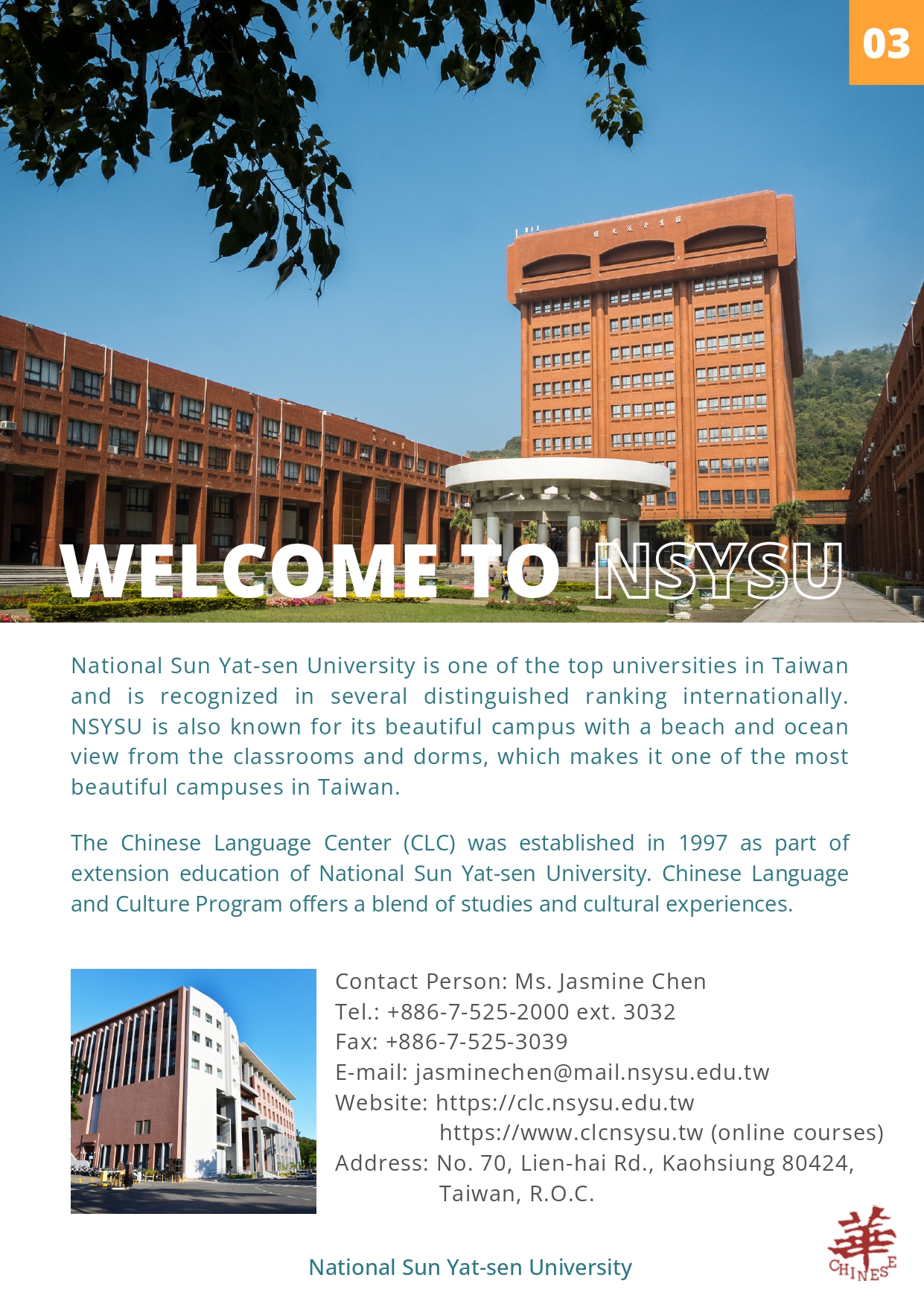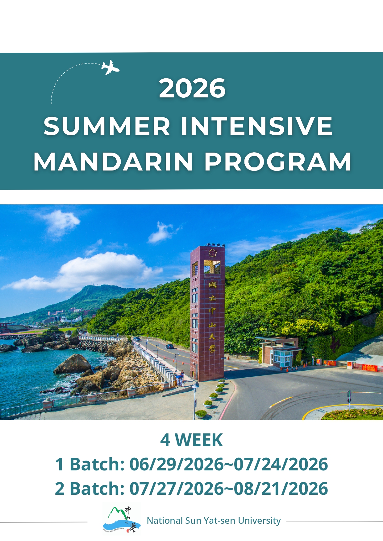 National Sun Yat-sen University (NSYSU), one of the top universities in Taiwan with the most beautiful campus located at the beach in Kaohsiung, again offers a Summer Intensive Mandarin Program for students in the summer of 2026.