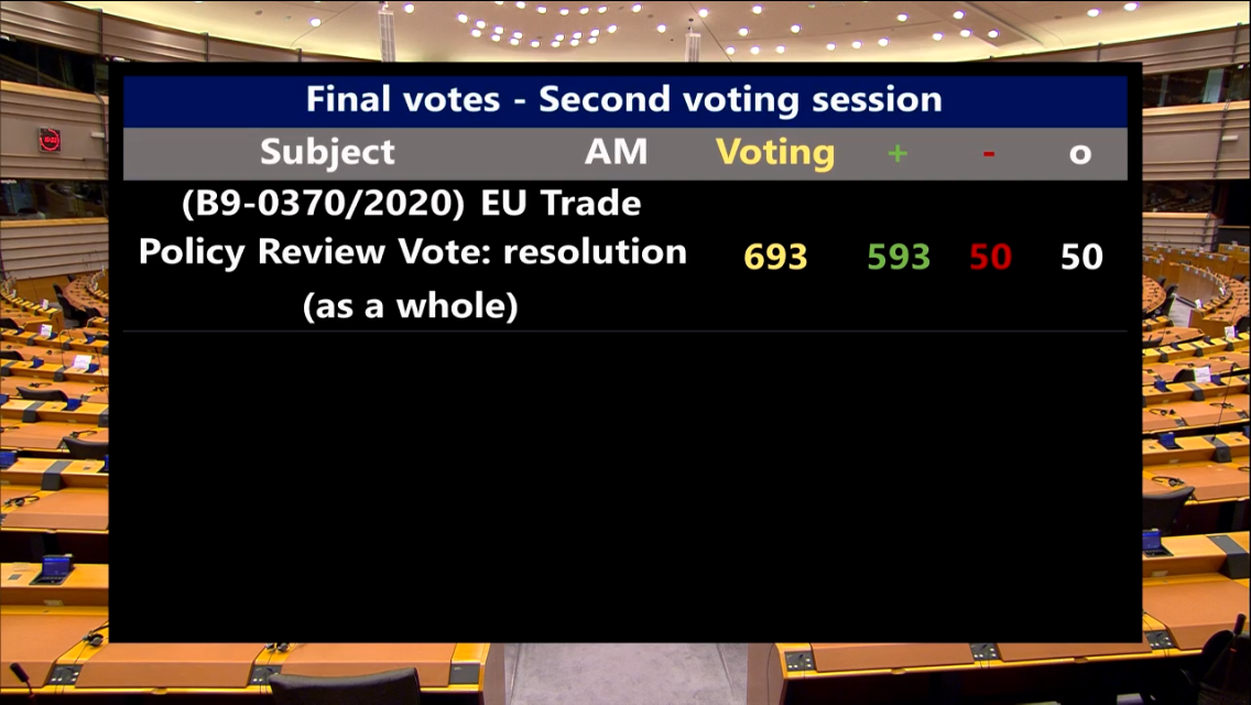This resolution represents the position of the European Parliament on the European Commission’s Trade Policy Review, which will be forwarded to the Commission. It emphasizes that while the world is facing daunting challenges caused by the COVID-19 pandemic, it is important for the EU to maintain “open strategic autonomy”, improve European industries’ resilience and enhance the cooperation with strategic partners such as the US.