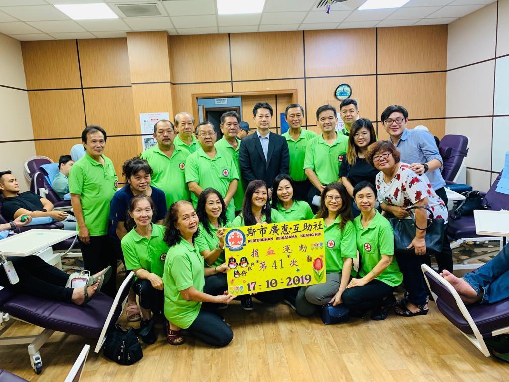 李代表憲章10月17日晚間前往汶萊蘇丹后醫院 (RIPAS)參加斯市廣惠互助社舉辦的捐血活動,與該社葉社長清文及參與成員合影