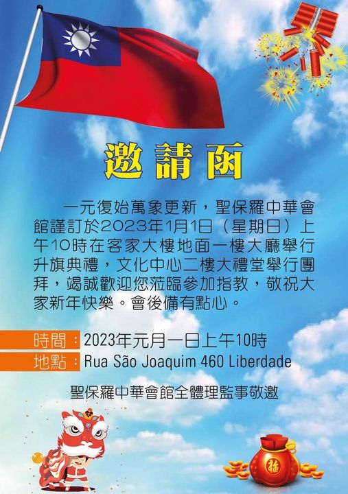 2023年1月1日(星期日)上午10時,我們在客家大樓舉行中華民國台灣112年元旦升旗典禮,謹邀請鄉親好友們共襄盛舉,齊慶開年。