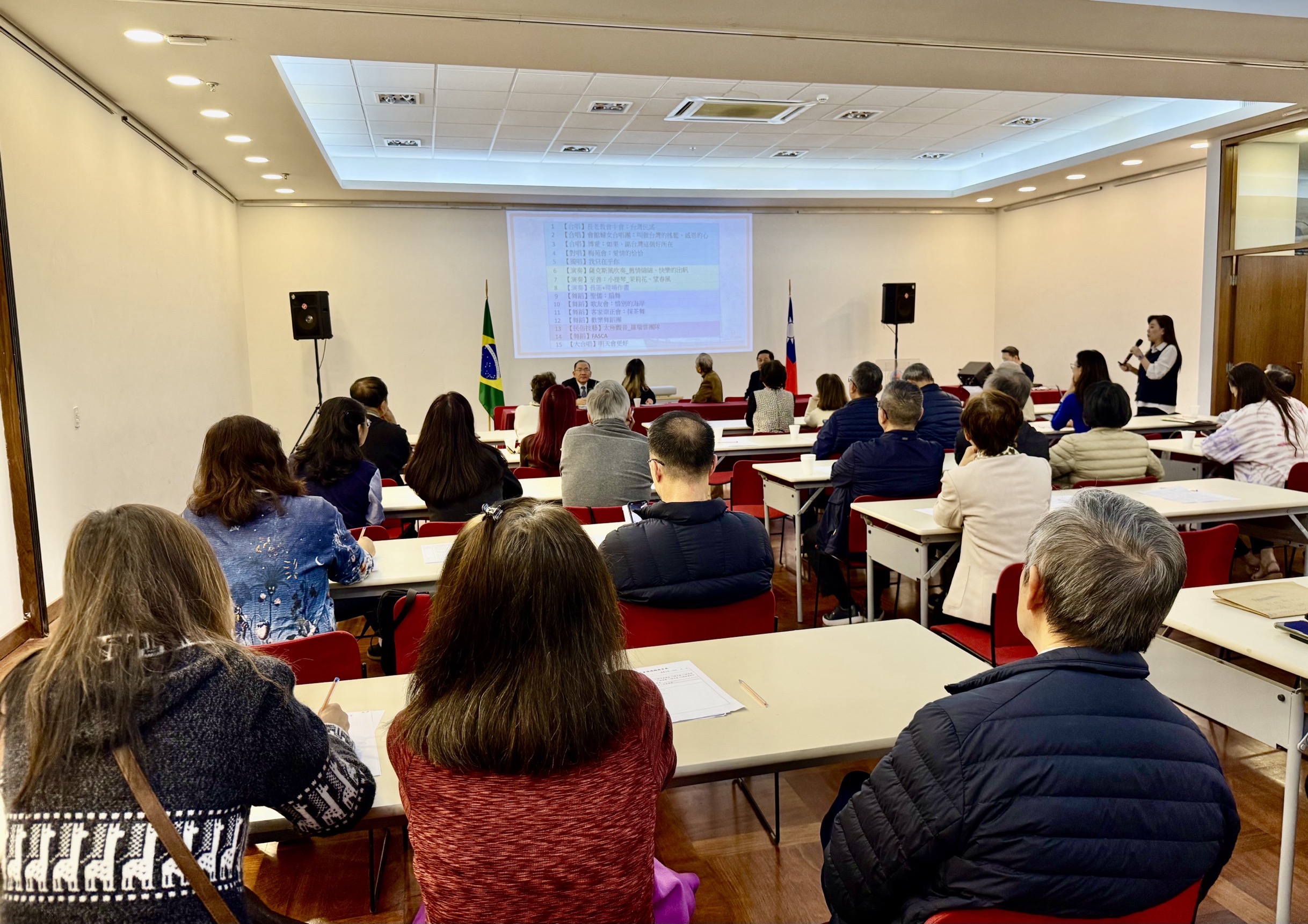 朱處長致詞感謝籌備委員們數月來持續協調做好萬全準備,期待透過系列慶祝活動,向巴西社會展現臺灣移民70年來在經濟、文化、教育等各領域的卓越貢獻,增進巴西友人對臺灣的認識與友誼,也讓後輩子孫汲取前輩的智慧與毅力。