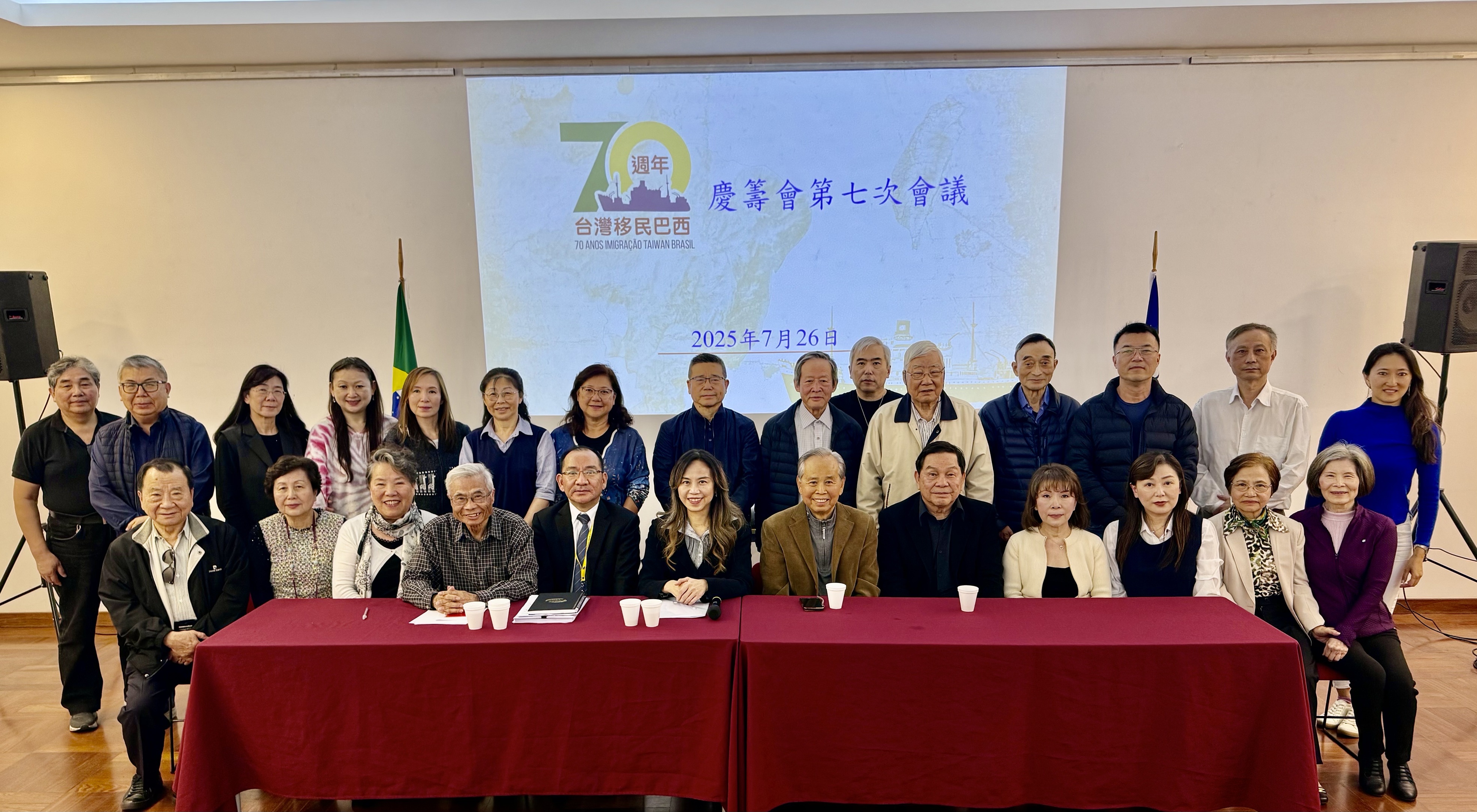 臺灣移民巴西70週年慶祝活動籌備委員會召開第7次會議,由主任委員劉學琳主持,駐聖保羅辦事處處長朱怡靜、聖保羅僑教中心主任尤正才、僑務榮譽職人員及僑團負責人出席。