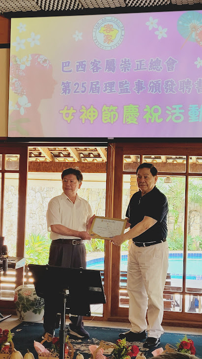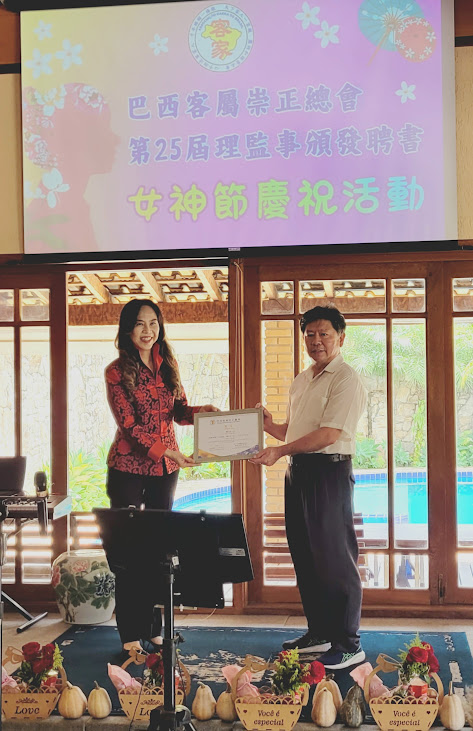 3月8日,巴西客屬崇正總會會員在廖仁煌名譽會長的別墅度過了一個充滿歡欣的週末。當天不僅隆重舉行了第25屆理監事證書頒發儀式,更溫馨慶祝了專屬於「女神們」的國際婦女節!駐聖保羅經濟文化辦事處朱怡靜處長夫婦及台貿中心施懿倫主任也應邀出席。