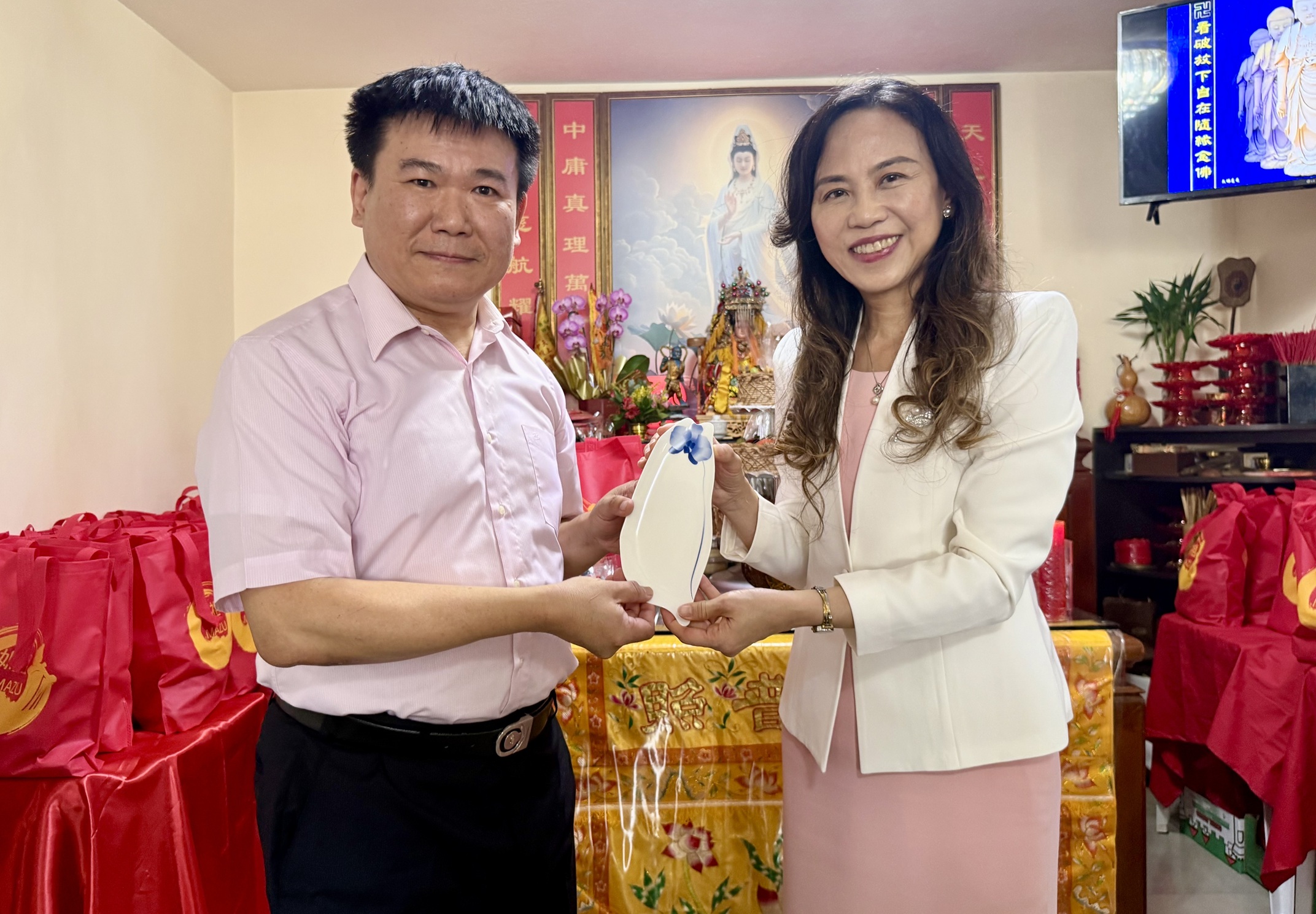 駐聖保羅經濟文化辦事處朱怡靜處長致詞表示,媽祖信仰是台灣宗教文化非常重要的一環,成為安定人心、凝聚社會共識的重要力量。媽祖所代表的慈悲、包容與大愛,超越宗教範疇,成為台灣人民共同且珍貴的文化與美德。她也感謝巴西媽祖慈善功德會傳承媽祖信仰與台灣傳統文化,成為海外鄉親的心靈寄託,更向巴西人民展現了台灣的良善力量。