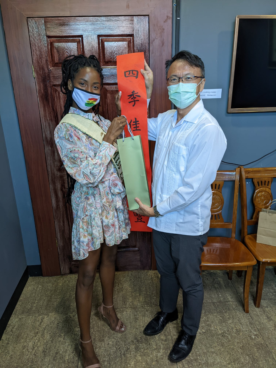 本館錢大使冠州與2021年「地球小姐」 Destiny Wagner合影。(2022/02/02)
