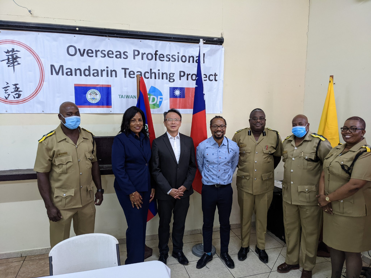 本館錢大使冠州很高興能與貝國內政暨新興產業部次長Kevin Arthurs、警察總署副署長Bart Jones及警察訓練中心主任Leslie Wade共同出席在貝里斯警察訓練中心(NPTA)舉行的「台貝華語課程」開幕儀式。(2022/06/16)