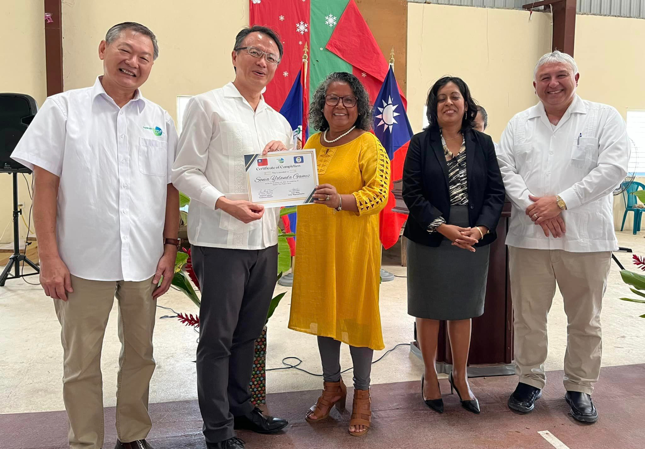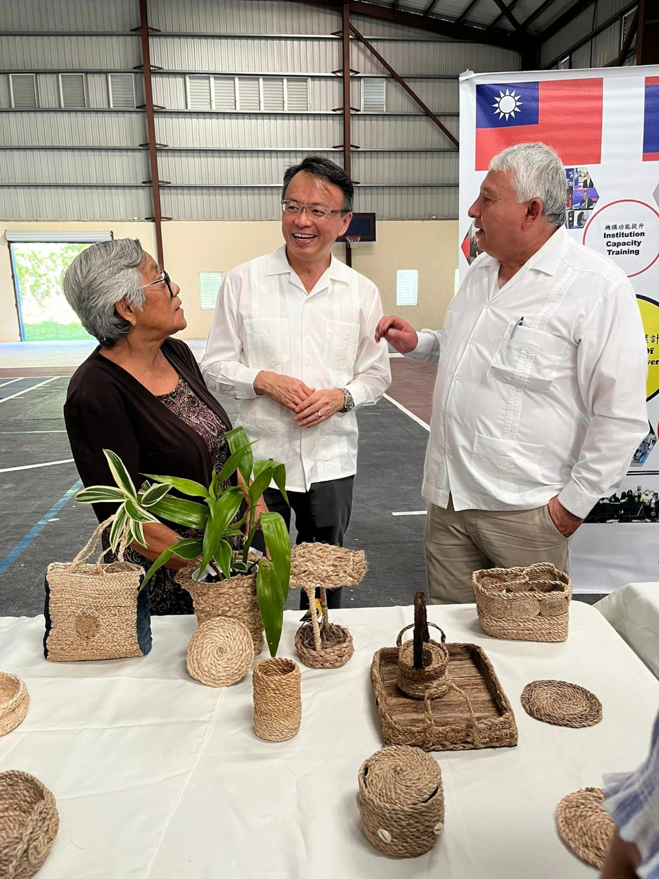 錢大使冠州本(112)年1月5日很高興能與貝里斯Cayo West選區眾議員Jorge Espat、貝國外交部國際合作司司長Orla Kantun-Coleman及Mopan技職高中校長Katie Jones共同出席上述訓練班學員的結訓典禮。該項訓練是在台貝兩國合作架構下,由台灣「財團法人合作發展基金會」(TaiwanICDF)透過「COVID-19後疫情時期協助貝里斯經濟復甦暨婦女賦權計畫-婦女就業創業及包容性金融技術協助計畫」贊助成功開設,旨在協助當地婦女利用廢棄香蕉纖維再製成有價值的手工編織藝品,以提升家計收入,改善生活。看到本次完訓的25位學員在結訓典禮會場展示她們親手製作的美麗編織藝品,我們也同感驕傲! ?❤️?