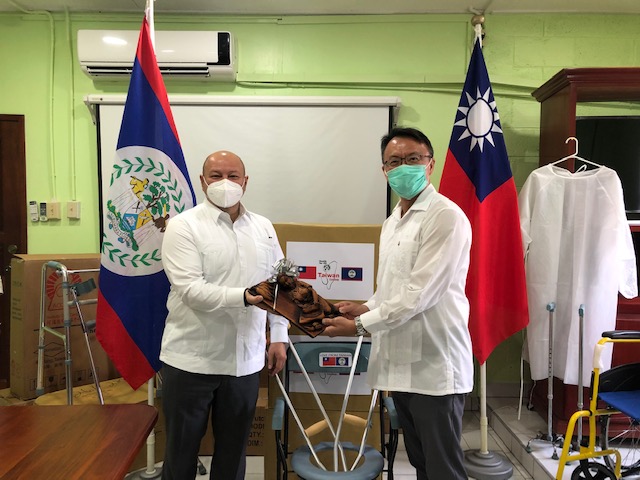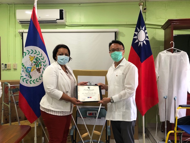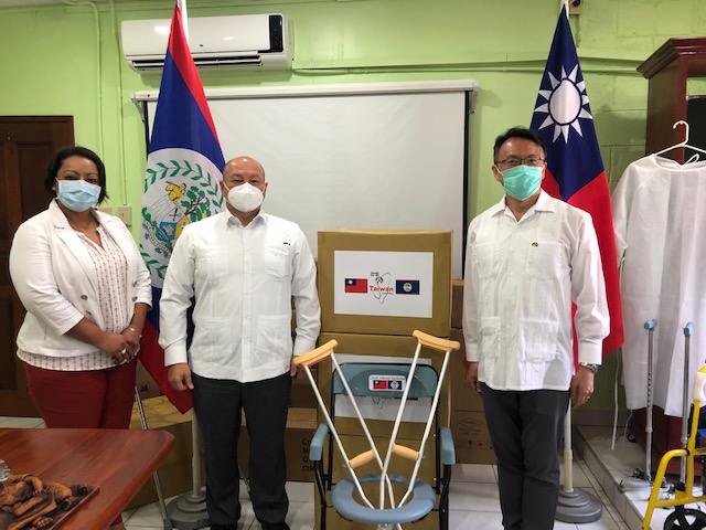 Through the ceremony, 90 wheelchairs, 148 steel commodes, 108 aluminum walkers, 240 aluminum sticks, 300 aluminum foldable sticks, 180 crutches, 120 quad canes, 100 blind sticks and 60 elbow crutches from two Taiwanese NGO – “Puh Sein Foundation” (財團法人普賢教育基金會) and “Cao Zhong Zhi Foundation” (財團法人曹仲植基金會), and 3,000 isolation gowns from a Taiwanese company – “Innovative Vista Corp.” were donated to Belize.