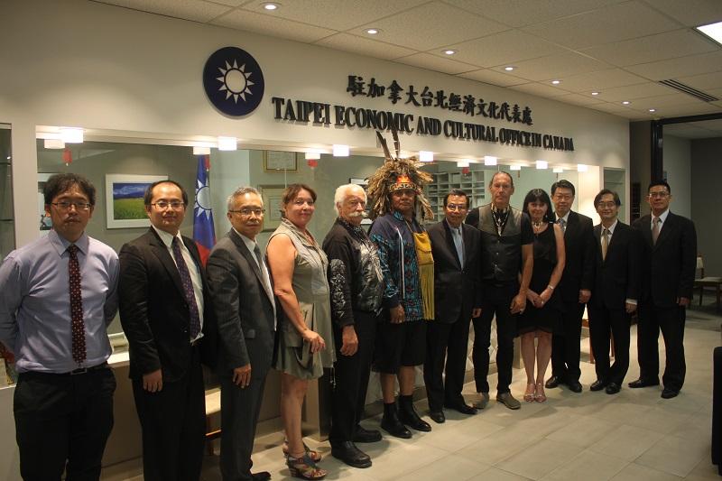 加拿大全國性原住民組織「加拿大原住民聯盟」(The Confederation of Aboriginal People of Canada)全國大酋長Guillaume (Billy) Carle等一行6人於7月27日下午拜會駐加拿大台北經濟文化代表處吳榮泉代表,表達與台灣原住民交流與合作之意願。