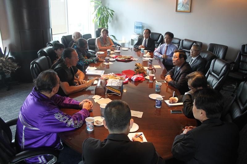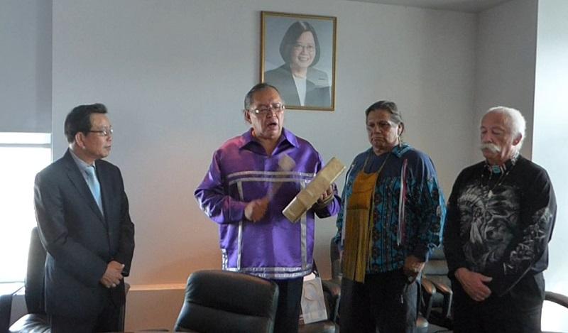 吳代表首先歡迎Carle大酋長等人親自前來代表處訪問,強調台灣與加拿大除共享自由、民主、人權及法治等普世價值外,兩國在原住民議題上也有許多相似的經驗與挑戰,雙方對原住民族的發展權利與文化保存也非常重視,台灣在成立行政院原住民族委員會及相關立法過程中也參考許多加拿大的寶貴經驗,期盼未來雙方進一步加強原住民事務的合作與交流。