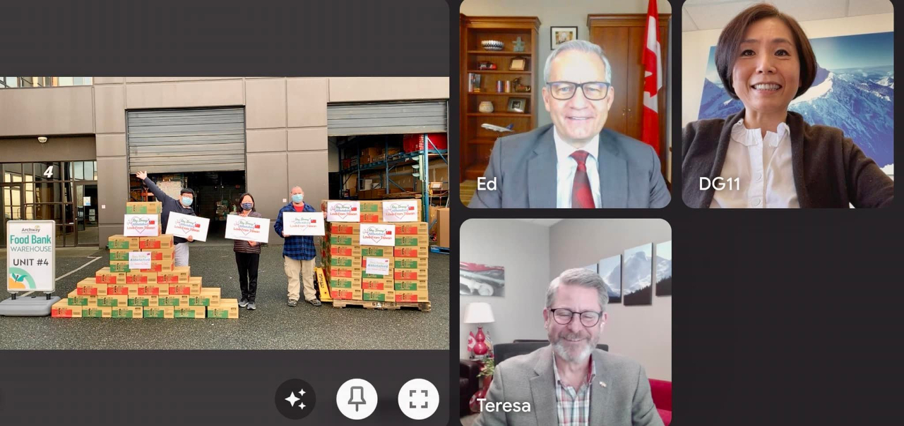 為協助卑詩省水災受災民眾獲得糧食補給,早日度過難關,國華台灣食品公司於11月26日捐贈A市Archway食物銀行百箱泡麵,並由本處劉處長立欣、加拿大聯邦眾議員Ed Fast及卑詩省省議員Bruce Banman線上見證捐贈儀式。F眾議員表示,台灣是加國可以信任之良好夥伴。加國不論在面對COVID-19疫情或本次洪災,均應與共享民主、自由及人權價值之國家攜手合作。B省議員則表示,A市許多民眾因洪災一夕之間失去所有,該市重建之路漫長,感謝國華公司及本處協助該市市民度過難關。劉處長感謝來自台灣廠商慷慨解囊,另感謝Archway食物銀行協助將物資發送給需要的災民,以及F眾議員與B省議員對此次活動的支持。