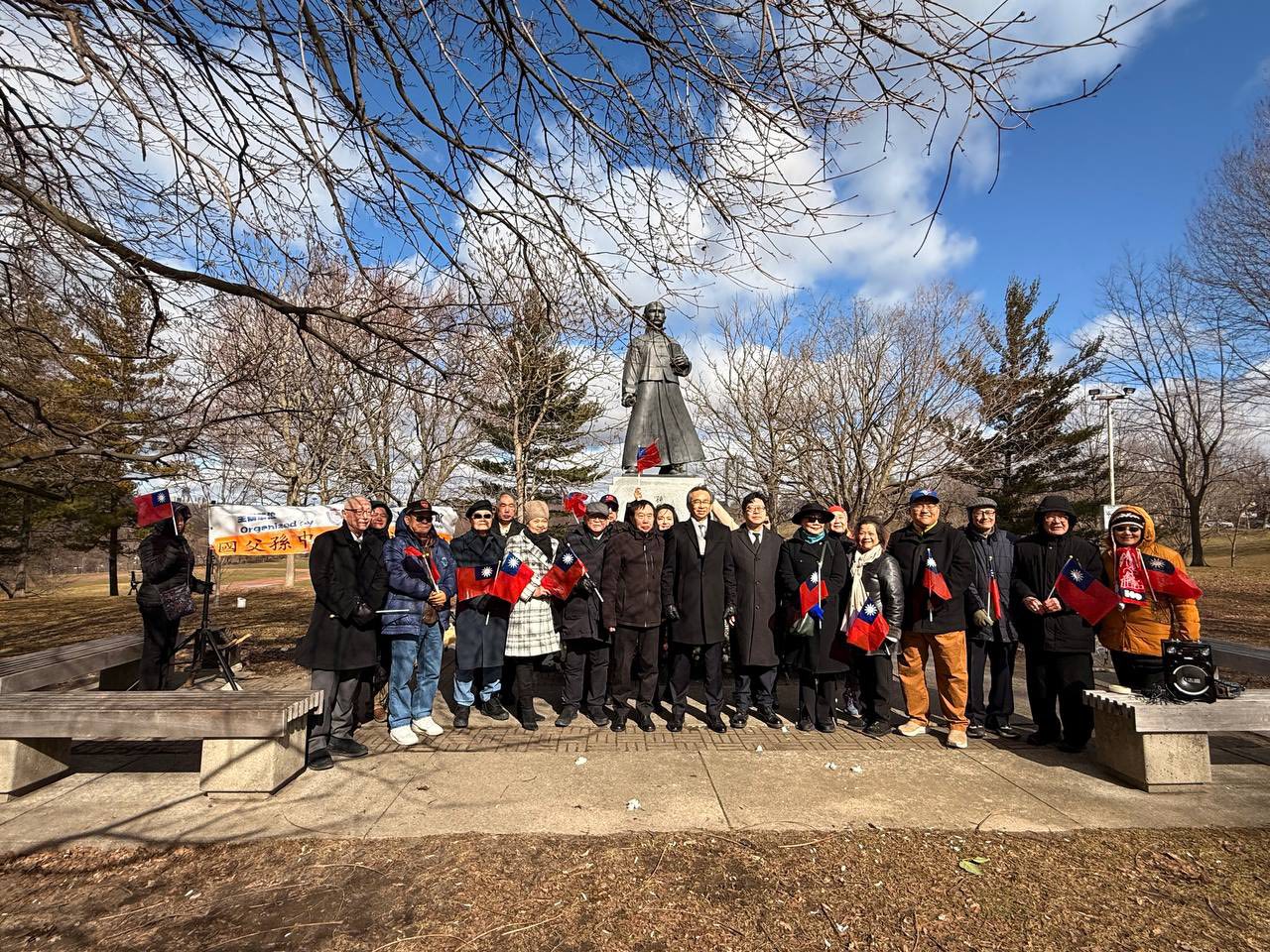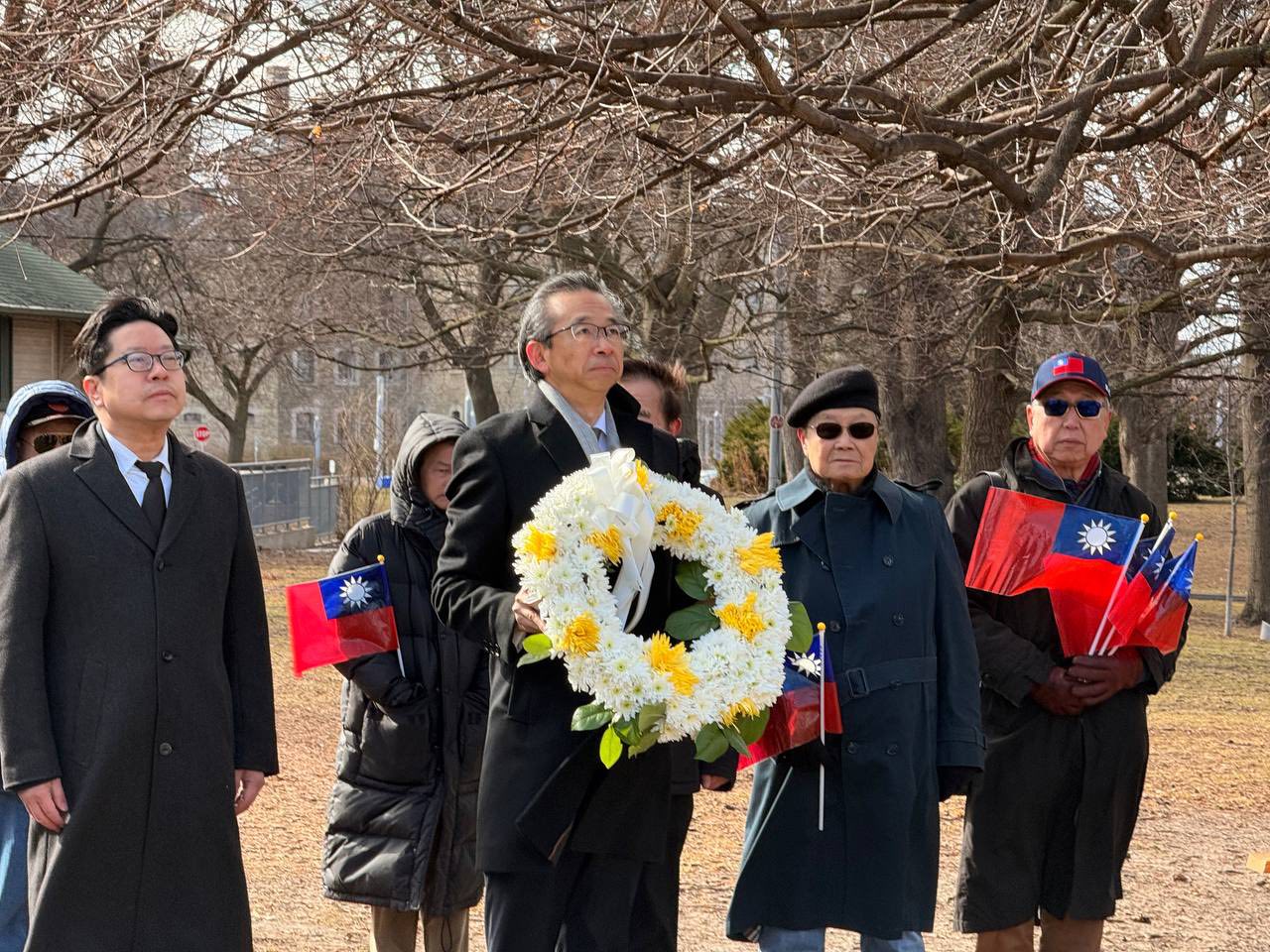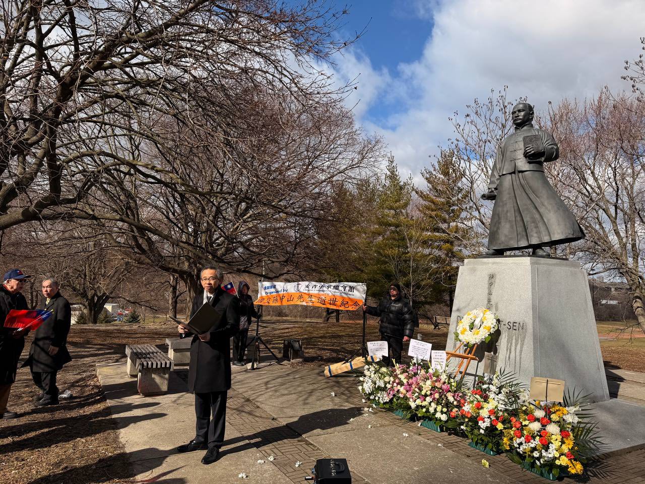 The Director General Liang attended the flower-laying ceremony at River Valley Park in Toronto, commemorating the 101st anniversary of the passing of Dr. Sun Yat-sen, the founding father of the Republic of China (Taiwan).