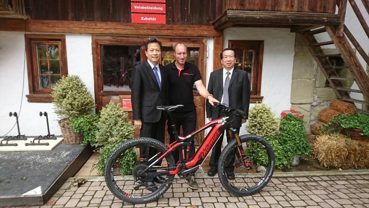 駐瑞士代表處谷代表瑞生本年8月10日偕經濟組范組長德安參訪瑞士Thömus AG自行車廠,該公司所有人兼執行長Thomas Binggeli親自出面熱忱接待。