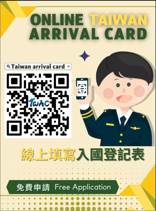 Within 3 days before arriving in Taiwan, please be sure to complete online Taiwan Arrival Card for free