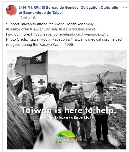 籲請各界支持我受邀出席世界衛生大會(WHA) - 駐瑞士台北文化經濟代表團日內瓦辦事處 Bureau de Genève, Délégation Culturelle et Economique de Taipei ::: 跳到主要內容區塊