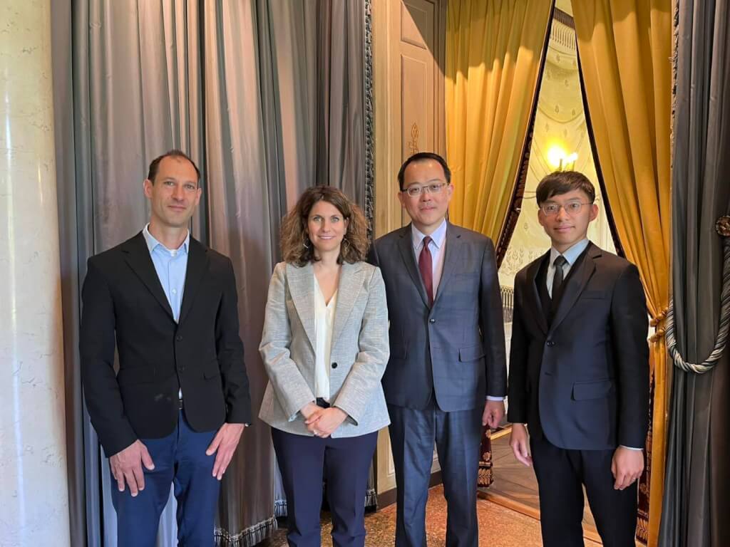 駐日內瓦辦事處長李冠德(右2)5月27日會晤時任日內瓦市長基索斯(左2),雙方在文化及經濟領域合作交換意見,雙方期許持續強化地方層級交流。
