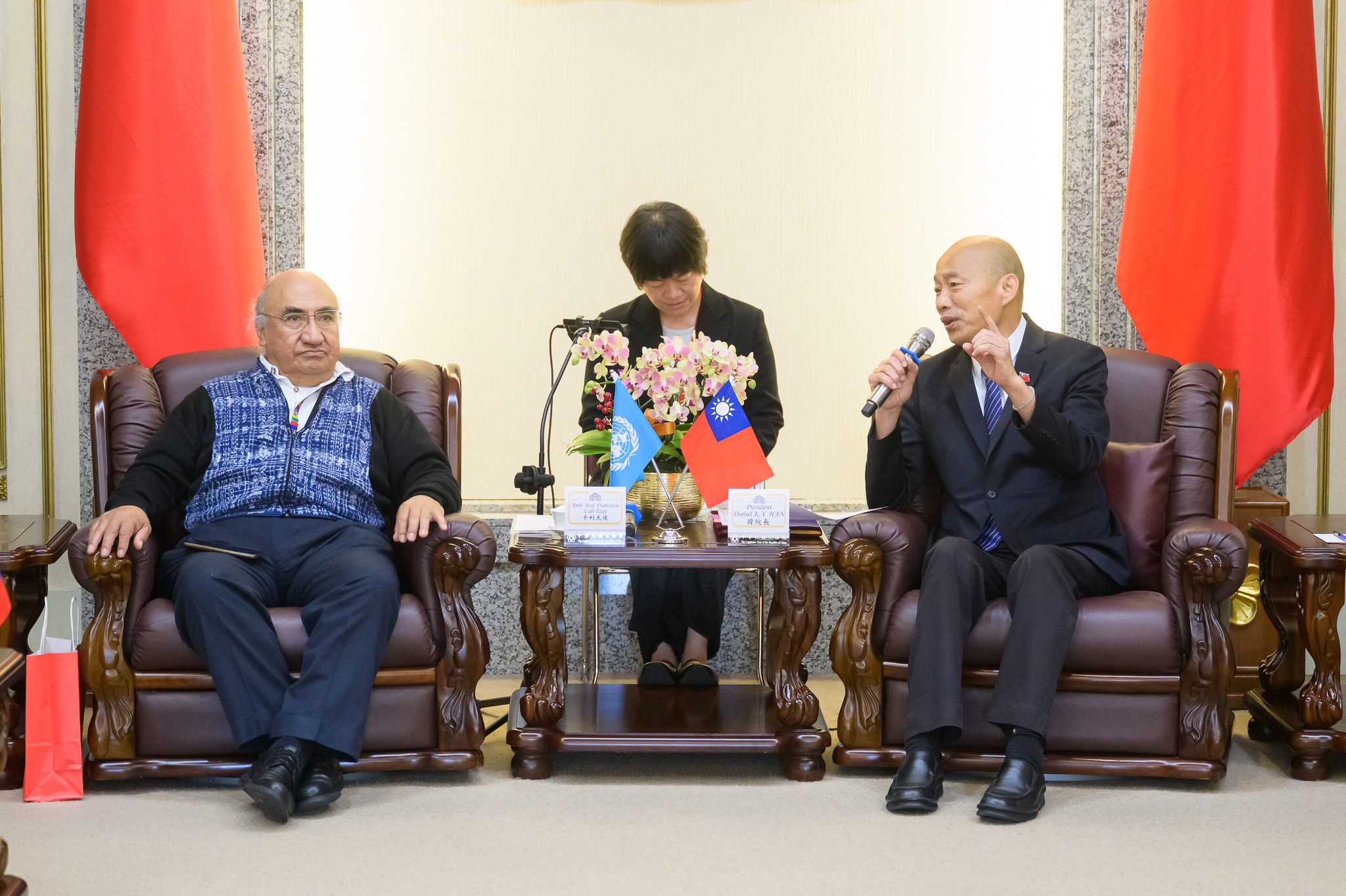 立法院韓國瑜院長於本(8月7)日中午在國民黨林倩綺委員、民進黨沈伯洋委員、民眾黨劉書彬委員及國際事務處林晨富處長等人陪同下,接見及款宴「友邦駐日內瓦聯合國暨其他國際組織常任代表訪臺團」卡利(José Francisco Calí Tzay)大使等一行6人,外交部甄國清主任秘書、駐日內瓦辦事處李冠德處長等人亦隨行陪同。