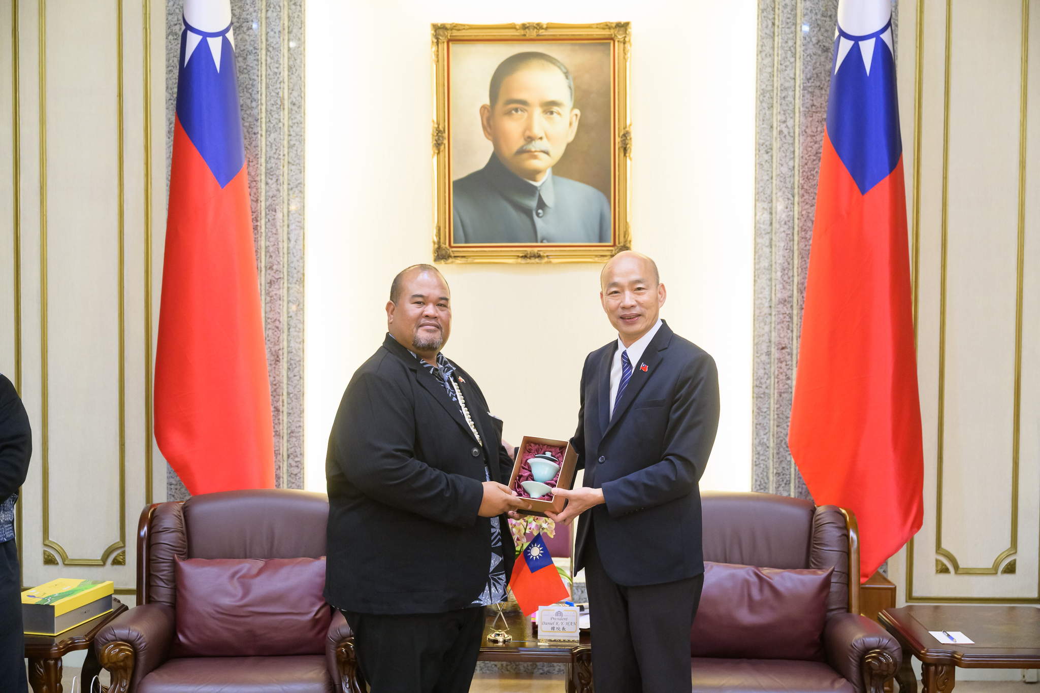 雙方互贈禮品後,隨即展開午宴交流。席間韓院長及立委與訪賓分別就臺灣遭遇天災時應變之韌性、公衛醫療發展、資訊安全、人工智慧、南島民族交流、農業合作、氣候變遷及工業成就等多項議題進行交流。接見與午宴歷約一小時三十分,氛圍輕鬆融洽,賓主盡歡,為今日的會晤譜上圓滿的句點。