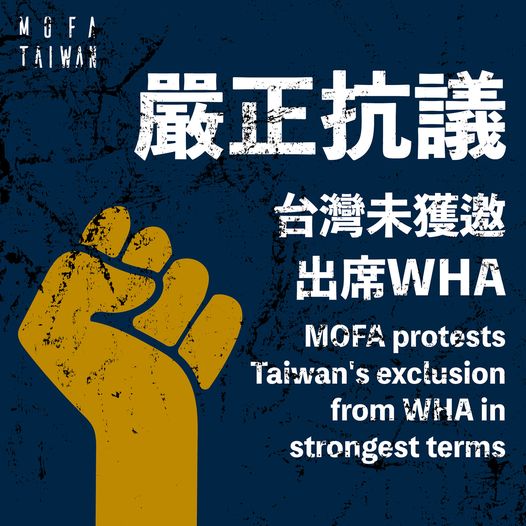 台灣對於「世界衛生組織」再度未邀請參加「世界衛生大會」表達嚴正抗議!