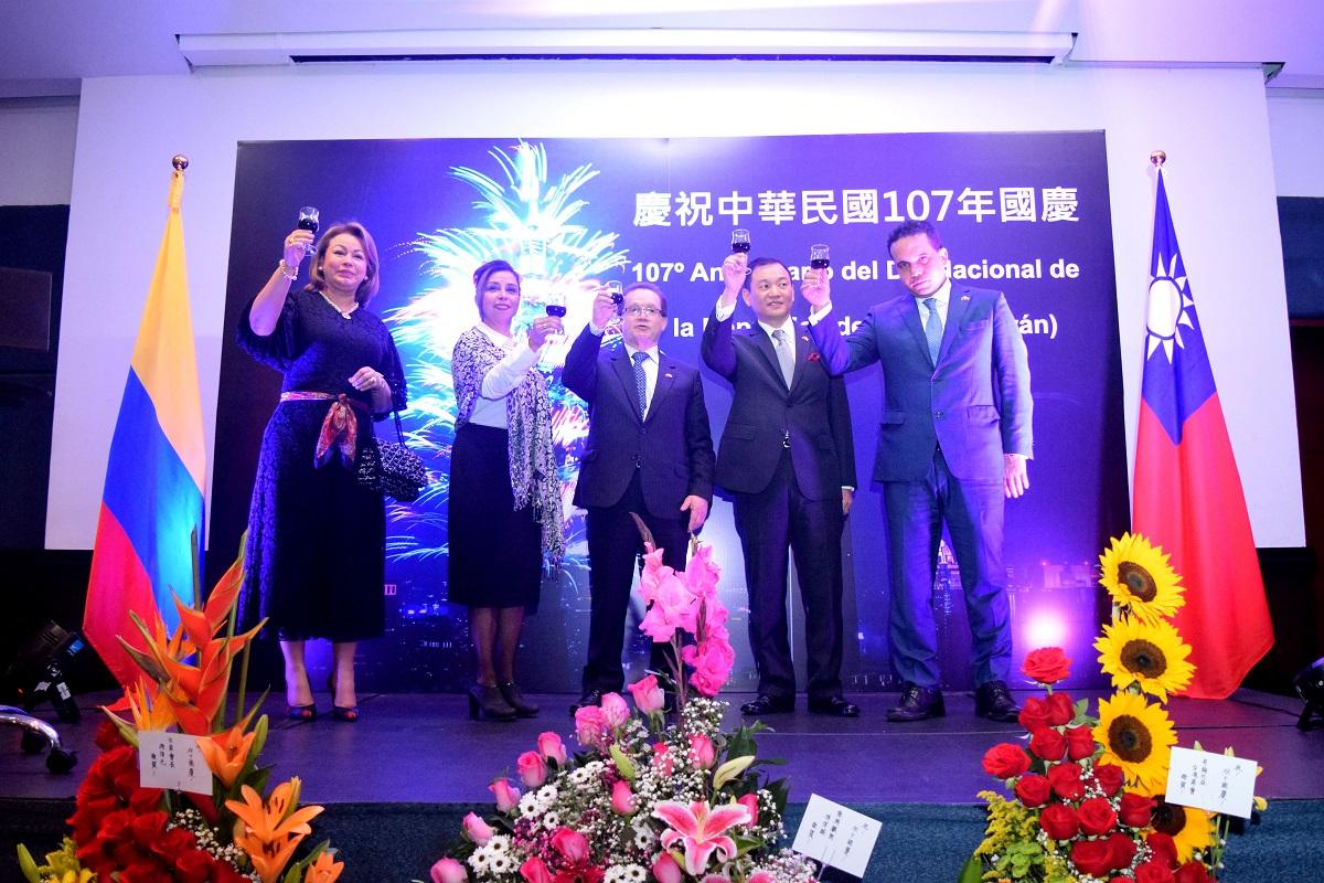 駐哥倫比亞代表處於10月10日晚間假哥京波哥大Cosmos 100飯店舉辦慶祝中華民國107年雙十國慶酒會,代表處韓志正代表率同全處員眷主持盛會,哥國政界、友邦大使、政府官員、商會、學術界、企業界、新聞界及僑界等350餘人出席,場面隆重溫馨。