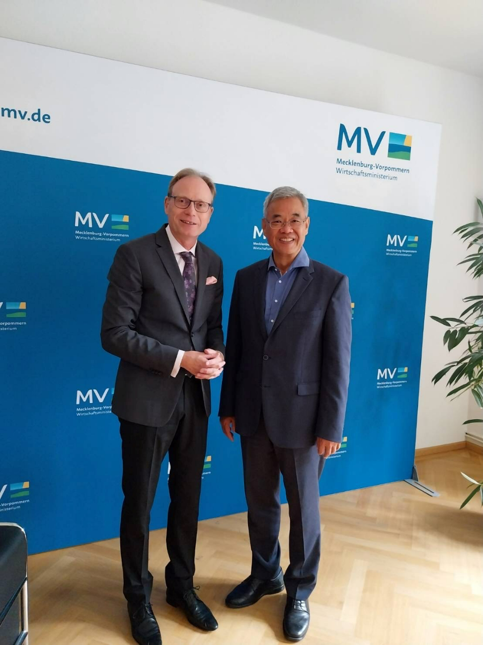 1. 拜會麥佛邦(Mecklenburg-Vorpommern)經濟廳副廳長(Staatssekretär)Jochen Schulte,就該邦與臺灣在再生能源技術與產業的合作潛力,特別是風能與氫能領域的投資機會交換意見。