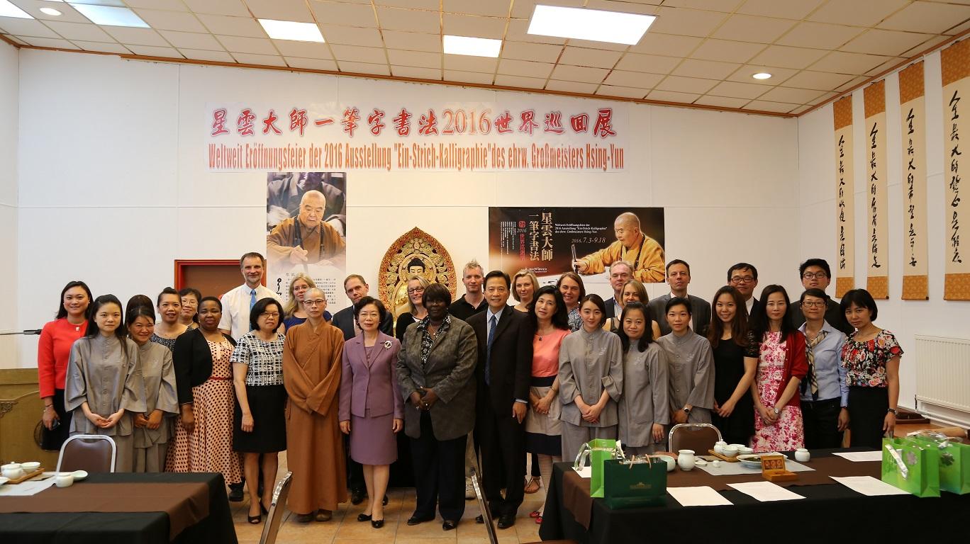 大多數與會貴賓均為生平第一次進入佛教寺院,對於大殿莊嚴肅穆的三寶佛及陳設甚感興趣。時值柏林盛夏,與會貴賓多揮汗而來,在禪修室靜謐的氛圍中體驗禪靜,品茗並以平靜的心情欣賞一筆字書法展的精義之後,個個顯得神閒氣定。