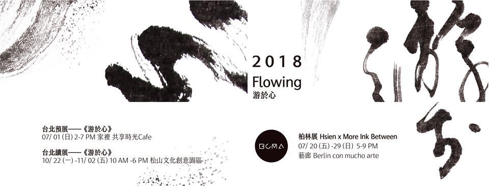 本展主題欲傳遞書法藝術之道氣,於浮躁的現代社會,藉由筆墨回歸自身,悠游於內在心流,體現書法精神天人合一的境界。以書法為主軸,透過動態影像的光影變化,詮釋墨的濃淡;肢體律動呈現書法線條,以及內在氣韻的流動。讓觀者以不同角度欣賞書法之美,並於多層次的空間經驗,從閱讀藝術到覺察自我。詳見 游於心 (FLOWING)