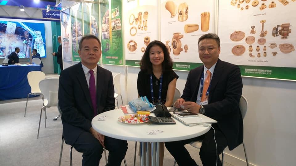 漢堡2018國際海事展(SMM)於107年9月4-7日於漢堡展覽館舉行,計有來自全球2200家廠商參展,參觀人次預估超過5萬人次。今年展覽重點在智能航運及工業4.0,我國臺灣舒瑞普及鑫綠泰等二家公司參展,駐漢堡辦事處沈文強處長特於開幕首日前往展場訪視廠商,瞭解我國商機及未來市場走向。 漢堡國際海事展是全球最重要且最多國家參與之專業展覽,參展廠商涵蓋海事規劃、製程技術及運輸補給等多元產業.