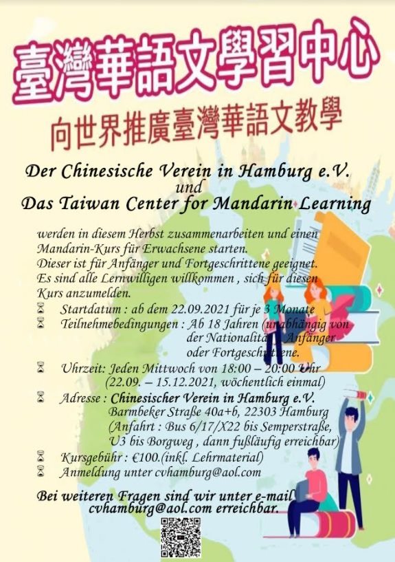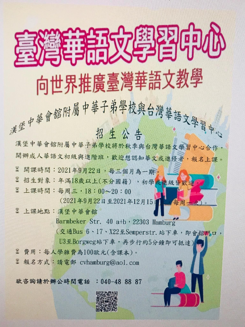 漢堡中華會館附屬中華子弟學校與台灣華語文中心合作,開辦成人華語文課程