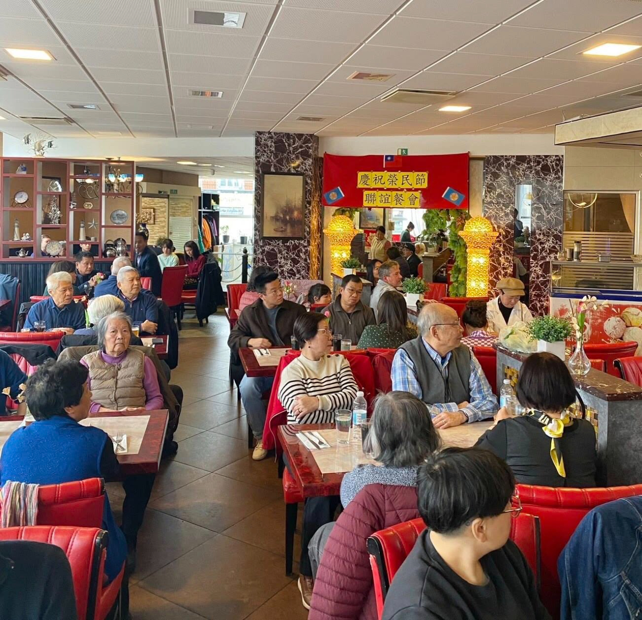 本處鄭大使榮俊夫婦偕同仁員眷應邀出席慶祝榮民節聯誼餐會,與丹麥榮光會成員等百餘名僑胞餐敘同樂。