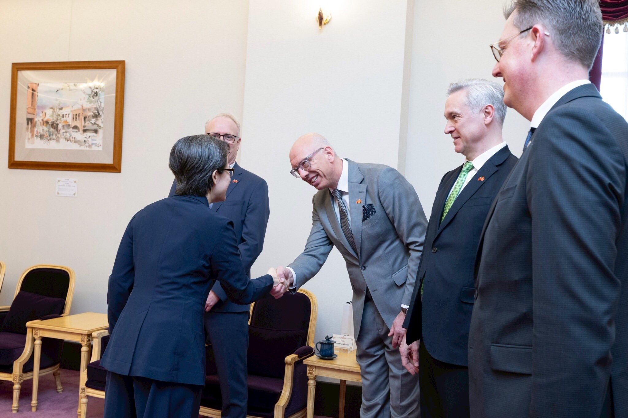 蕭美琴副總統接見丹麥國會議員訪團,盼進一步促進雙邊夥伴關係。 蕭美琴副總統於11月27日上午接見「丹麥國會議員訪問團」,感謝友台小組支持臺灣有意義地參與國際組織,並強調臺海和平穩定的重要性。期盼訪團此行更深入了解臺灣社會,並進一步促進雙邊夥伴關係。 副總統致詞時表示,非常高興歡迎丹麥國會議員訪團來到臺灣,感謝友台小組一直以來在多方面支持深化雙邊夥伴關係,包括支持臺灣有意義地參與國際組織,也強調維護臺海和平穩定的重要性。 副總統說,國際情勢對於臺灣而言一直十分艱難,在國際參與方面並未受到公平對待,但臺灣總能從世界各地的朋友得到支持,知道自己並不孤單。 副總統指出,臺灣與丹麥的合作也具有其獨特面向,例如丹麥再生能源公司已成為臺灣最大的投資者之一,為臺灣的能源韌性及能源組合的多元化做出貢獻。雖然兩國都不被視為大國,但總能找到機會超越自身規模,發揮在新興領域與尖端科技上的影響力,因此彼此是非常重要的夥伴關係。 副總統提到,丹麥在「世界幸福指數」中名列前茅,令許多臺灣人民感到欽佩。臺灣有些書籍介紹丹麥人如何平衡工作與生活,既能保持高效、也能享受生活,臺灣人民也需要學習如何取得更好的平衡。相信兩國有很多可以互相學習的地方,也非常感謝胡格(Kasper Roug)議員率團訪臺,盼更深入了解臺灣社會,並進一步促進雙邊夥伴關係。 訪團成員尚包括國會議員延森(Thomas Jensen)、阿倫德森(Alex Ahrendtsen)及克萊森(Morten Klessen)等,由外交部次長吳志中陪同,前來總統府拜會副總統。