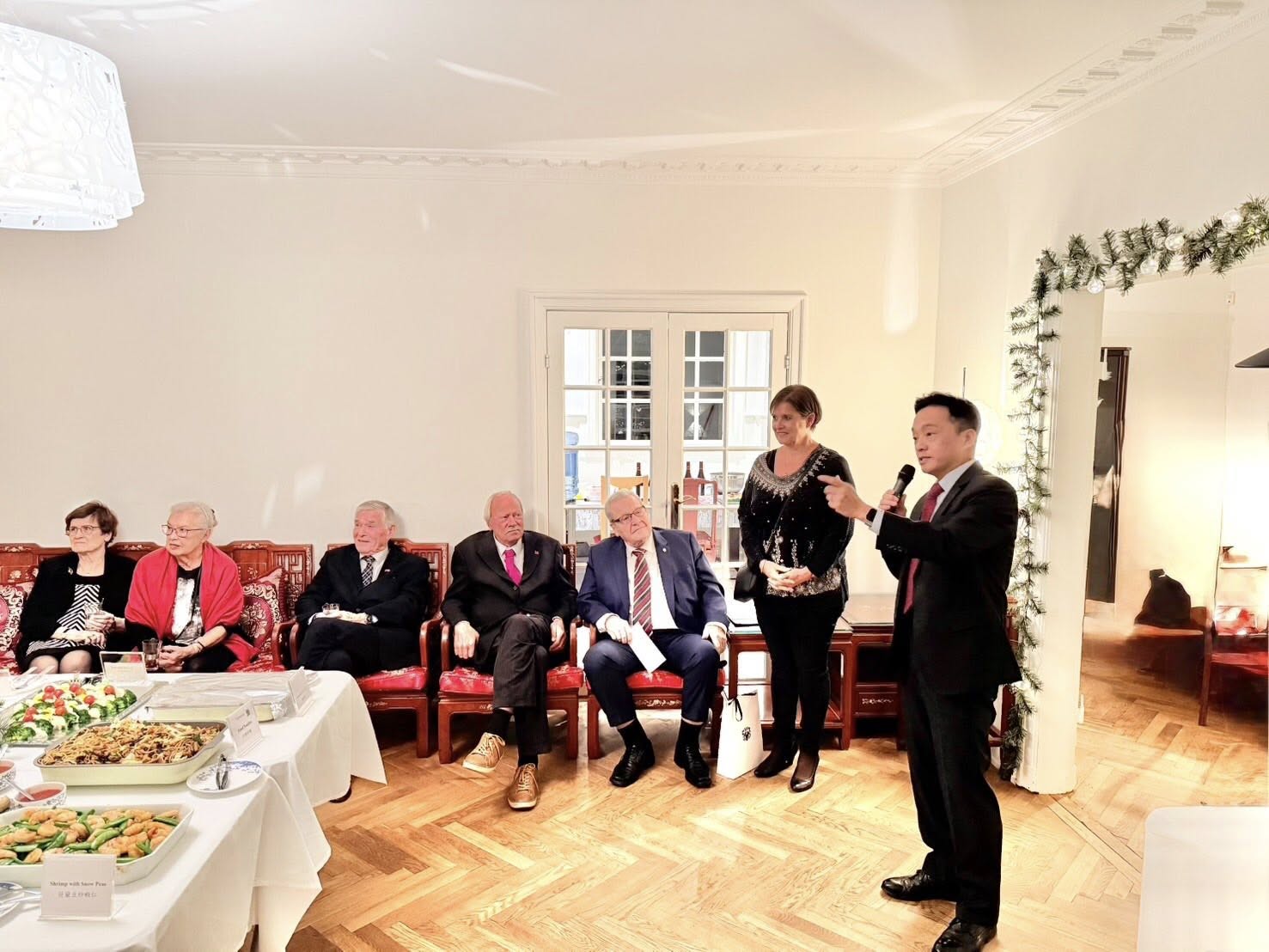 本處日前舉辦聖誕餐會,邀請多位國會議員及台丹協會會長暨理監事等人,一同慶祝佳節。 鄭大使首先致詞歡迎賓客應邀共同慶祝聖誕佳節,並感謝各位友人長期情誼,另藉近期國會議員訪台,盼能增進丹麥民眾對台灣有更多瞭解。 台丹協會會長Svend Hovmand接續致詞表示,感謝本處歷年來皆與該會保持良好互動,該會未來也將持續盡力協助推動台丹雙邊關係。