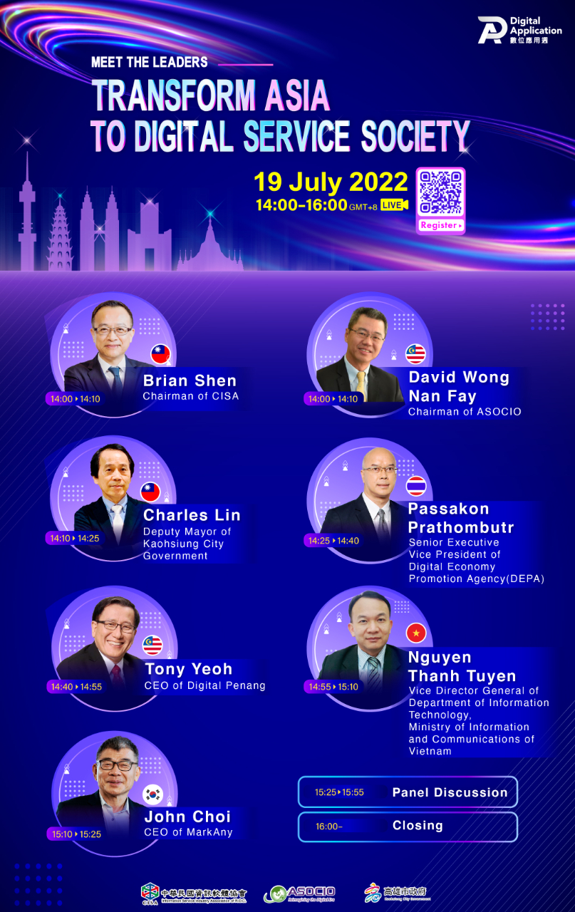 Information Service Industry Association of R.O.C. will hold “Transform Asia to Digital Service Society” on-line forum on 19th July, 2022. Below are the details. For registration, please visit https://digi.cisa.tw/forum02.html.
