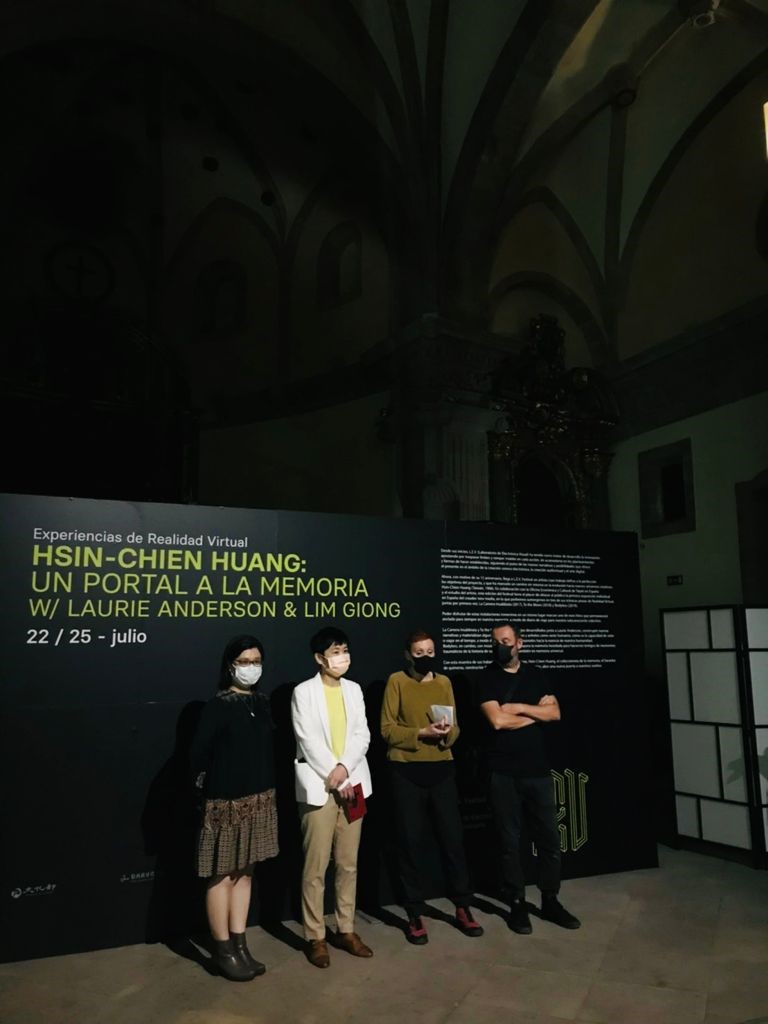 我國新媒體藝術家黃心健迄今在歐洲舉辦最大規模的個展《記憶的門戶》(Un portal a la memoria),由駐西班牙代表處文化組張祐瑄組長偕林品樺秘書,代表駐處劉德立大使於本(7)月22日出席開幕式,現場包括策展人Cristina de Silva、策展人Nacho de la Vega、希洪市政府文化部門團隊、媒體記者及文化界人士參加。張組長感謝兩位策展人費心將VR作品巧妙地安排在具有歷史感之聖約翰浸信會教堂展覽,也對希洪市政府提供的協助表達謝忱,並轉達藝術家黃心健因疫情無法親自前來開展,但對展出成果充滿期待及信心。