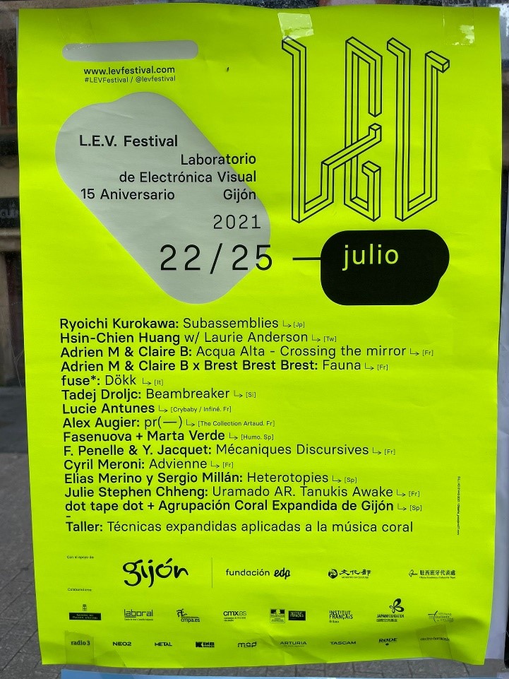 今年是駐西班牙代表處首度與L.E.V.數位藝術節合作,適逢該節辦理15周年紀念,該節在歐洲擁有眾多支持者,享有極高知名度,每年參觀人數均超過1萬人,今年除了臺灣以外,另有日本、斯洛維尼亞、義大利、西班牙及法國等國參加藝術節,總共推出17個節目。
