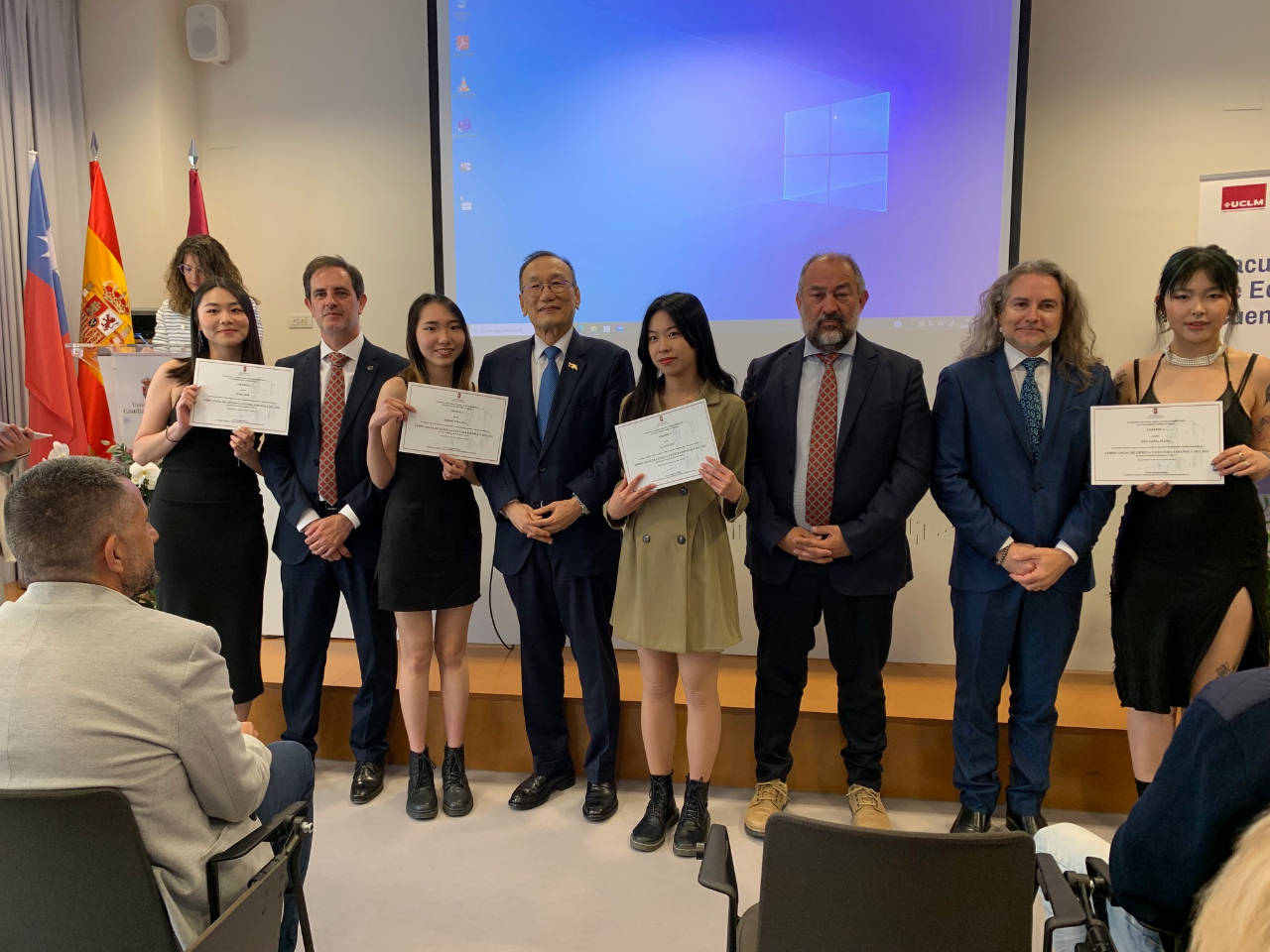 駐西班牙代表處劉大使德立應西班牙卡斯提亞拉曼查大學(Universidad de Castilla-La Mancha, UCLM)校長José Julián Garde邀請,於本(2023)年5月12日赴該校昆卡(Cuenca)校區與Garde校長、昆卡校區負責人副校長César Sánchez及西語課程計畫主任David Segovia等共同主持該校為我國、美國、德國、巴西、日本及海地等國計27位學生辦理2022年9月至2023年5月的西語密集課程結業典禮,並逐一頒發結業證書予所有學生。此次我國學生包括淡江、輔仁、華梵及暨南等4所大學計19名學生,為上述各國中參加人數最多的國家。