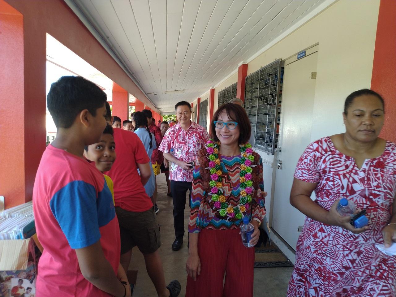 袁主席志光(Newton Yuen)偕理事於表演結束後陪同黎代表參觀逸仙小學,袁主席感謝僑委會歷年來對斐濟逸仙小學的重視及支持,並盛讚僑委會多年來持續派遣優良海外文化老師之專業能力及敬業態度,教導逸仙小學學生學習具中華文化及臺灣特色之舞蹈。該校每年在慶祝農曆新年、孔子教師節、結業式時均舉辦舞蹈表演,展現所學,深受學生、家長之喜愛及支持,盼僑委會能持續派遣海外文化老師至逸仙小學教授舞蹈。