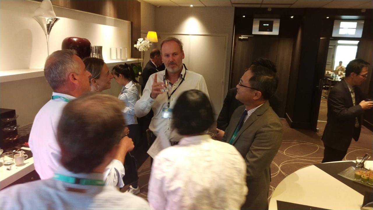 研院執行經濟部工業局計畫,於「歐洲白內障與屈光手術協會(ESCRS)」年會期間,於本年916日在巴黎舉辦「2019台灣眼科精品發表會」,鏈結來自各國眼科醫療器材通路商與台灣眼科器材廠商交流,並由駐法國代表處經濟組及巴黎台貿中心出席指導。台灣眼科醫療器材廠商包括Universal Ophthalmology Group CompanyCrystalvue Medical CorporationMedimaging Integrated Solution Inc.ACER IncorporatedSafetran BioMedical Inc.LIGHTMED CORPORATION,分別對自家最新產品進行介紹:如12M pixel resolution RETINAL CAMERA(Crystalvue), AI Aided Diagnosis of Diabetic Retinopathy(ACER), 3 in 1 AI DR Screening Solution(MiiS), DRY EYE SYNDROME & CORNEA ULCER device(Safetran) and four wavelengths pattern-scanning photocoagulator platform (LIGHTMED) 等,會議前、會議後討論非常熱絡,提供雙方建立有深度的交流平台。