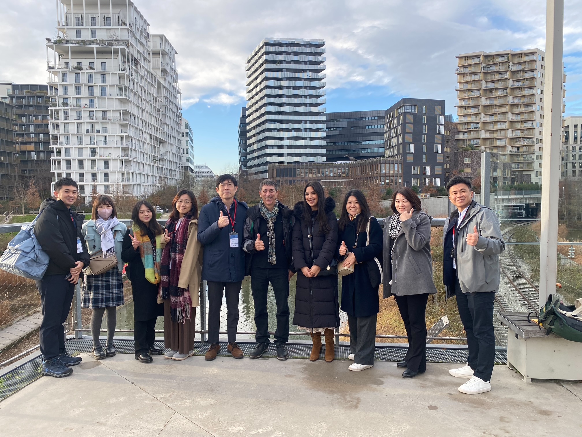本處另派員陪同訪團拜會巴黎市長Anne Hidalgo政策顧問Carlos Moreno教授,瞭解巴黎市推動「15分鐘城市」概念之相關配套措施。訪團亦參訪巴黎市占地54公頃的Clichy-Batignolles生態園區。