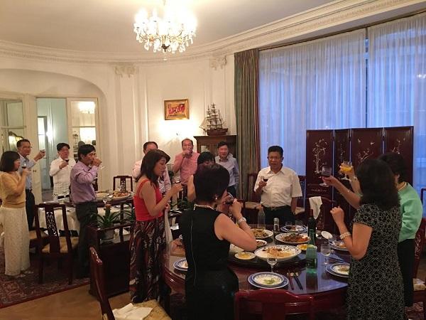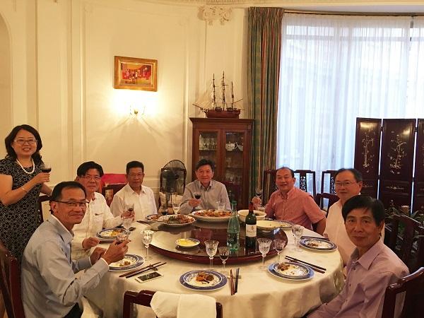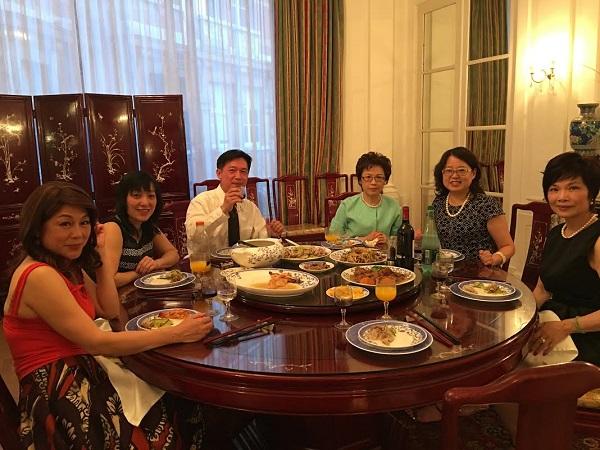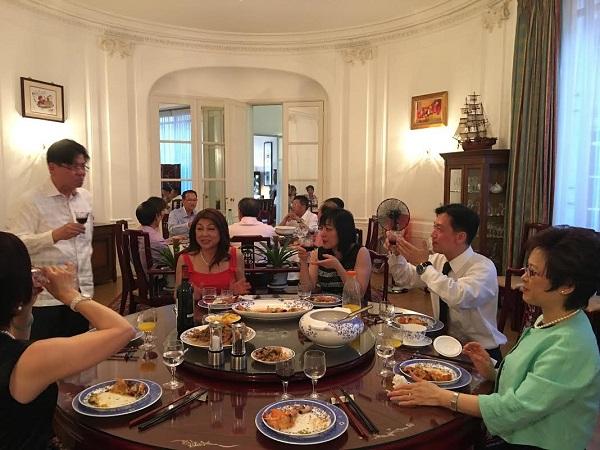 中華民國駐法國代表張銘忠大使夫婦於7月30日(星期六)晚間7時在職務宿舍宴請旅法僑領;蔡國泰僑務諮詢委員、陳秫娟僑務諮詢委員、黎輝僑務諮詢委員、黃行德僑務諮詢委員、李永慶僑務委員夫婦、郭珮涵僑務顧問、丘世璿僑務促進委員、李河僑務促進委員夫婦及法國臺灣商會鄭國正副會長等僑領應邀出席。