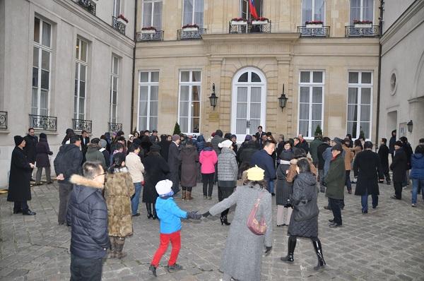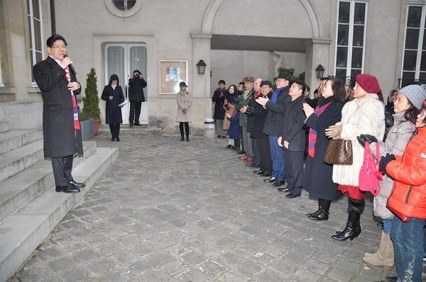相關儀式結束後,駐法代表處特別提供刈包、炒米粉、熱豆漿等臺灣傳統點心及茶飲,讓與會鄉親與法國友人有機會品嚐到臺灣家鄉味美食小吃,在攝氏零下1度的寒風中倍覺窩心與感動,彼此相互賀年並盡情歡敘,一起在巴黎的嚴冬中度過一個深具意義的溫馨元旦早晨。