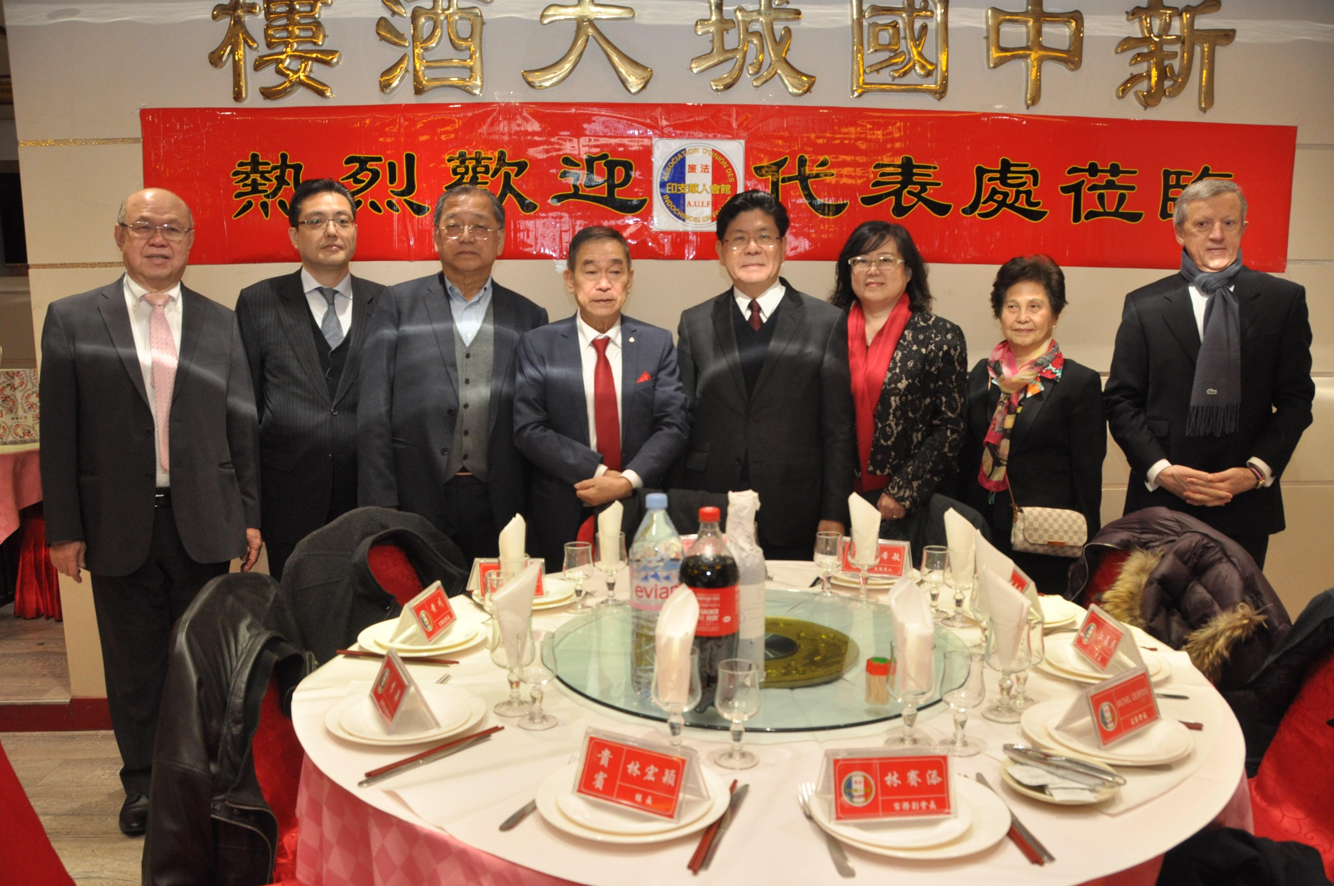 旅法印支華人會館於1月8日中午在新中國城大酒樓舉辦迎新年餐敘,中華民國駐法國代表張銘忠大使夫婦偕僑務組林宏穎組長等9位館員及台灣貿易中心蕭主任應邀參加活動,和江基民會長偕同16位副會長歡聚一堂,聯繫彼此情誼,分享經驗與看法。