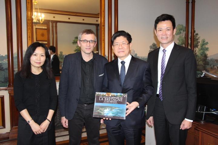 張銘忠大使於1月17日偕科技組張中白組長、教育組陸美珍組長會晤雷恩第一大學副校長Pierre van de Weghe。雙方就2018年臺法高等教育論壇、該校與南科合作、雷恩政治學院與我方合作等交換意見。
