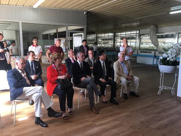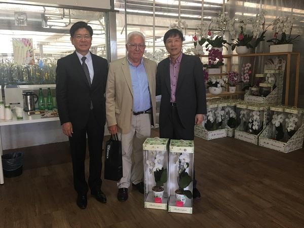 張大使銘忠邀集法國南部花都Hyères市市長Jean-Pierre Giran、選區國民議會議員Jean-Louis Masson、Var省參議員Claudine Kauffmann、國民議會友台小組Jean-François Cesarini主席等當地政要,於6月22日上午參訪台商「歐奇蘭生物科技股份有限公司」設於當地的蘭園。歐奇蘭董事長楊蓮傳簡報表示,歐奇蘭自2009年發展迄今,前後已投資1800萬歐元,目前有法籍員工18人、台籍員工5人,為法國境內頗具規模的台商。歐奇蘭以台灣蘭苗成功培育獲得法國農業部認證的「法國之花」,希望藉由法國人愛用國貨的心理,逐漸取代自荷蘭進口的蘭花。此外,歐奇蘭溫室以太陽能搭配冷熱水供輸系統,可確保溫室生產蘭花所需的常溫,可有效節能。Hyères市Giran市長於視察蘭園後表示,Hyères市因氣候、土壤等自然條件良好,適合培育花卉,享有花都美號,非常高興有台商在此精心育蘭,勉勵「歐奇蘭」掌握天時、地利及人和,在法國創造事業高峰。會後楊董事長及張大使分別致贈訪賓歐奇蘭蘭花及噶瑪蘭威士忌禮盒。