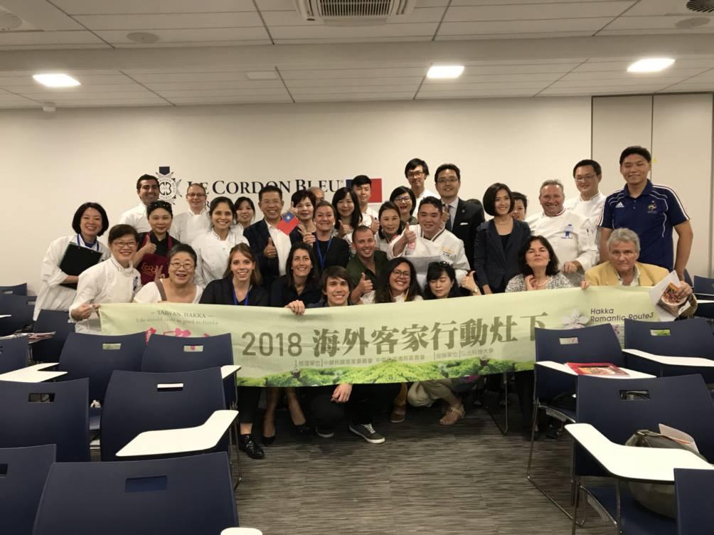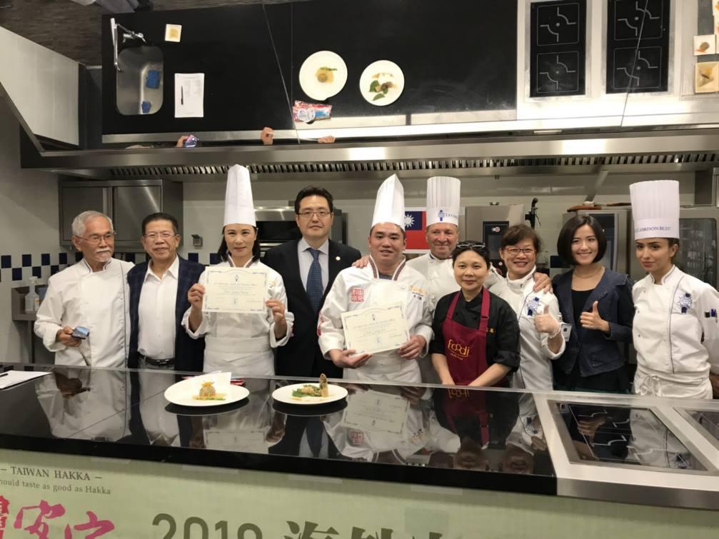 會後Groult主廚代表藍帶學院頒發證書給江翠玲及李志龍,兩位客籍廚師則期許這些來自許多不同國家的學員們能傳承客家美食廚藝、向世界各地推廣。