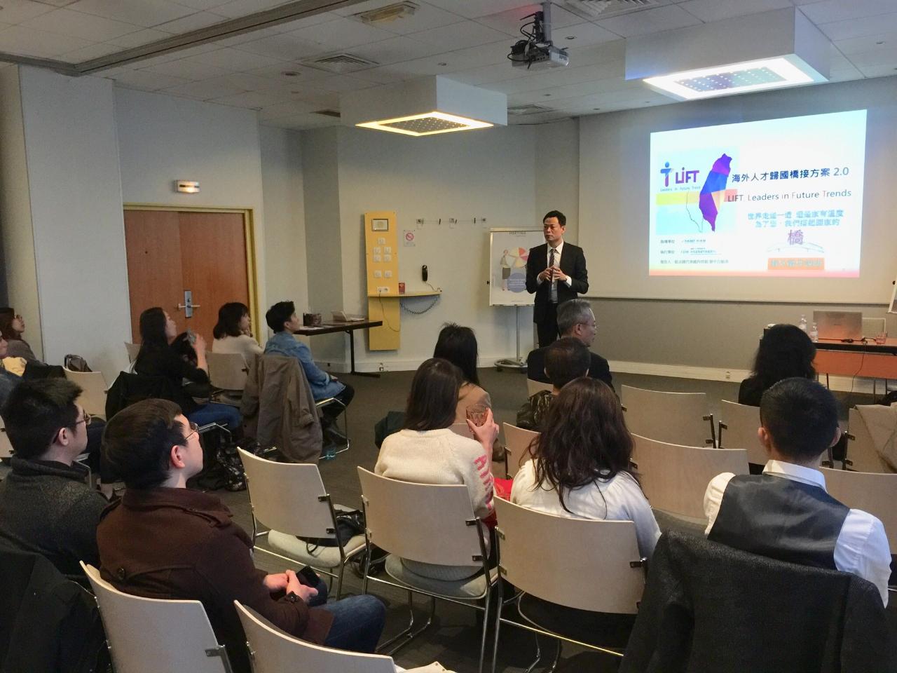 科技組張中白組長說明,為促進海外學人加速瞭解臺灣產業現況及國內高階人才需求期盼並達成返國服務之目的下,搭建一系列的延攬海外高階人才(博士級或同等)返國之交流媒合平台,我國科技部自去年起即推出「海外人才歸國橋接方案(LIFT)」,吸引並協助海外人才返國貢獻所長。今年,科技部再度推出LIFT2.0方案,獲核定同意補助返台之學人,將可獲得來回台灣經濟艙機票,以返國參與為期12天之「海外學人返國交流會」系列活動,期間食宿及交通等相關費用將由科技部專案辦公室統籌安排。期待符合資格之海外學人踴躍報名參加。