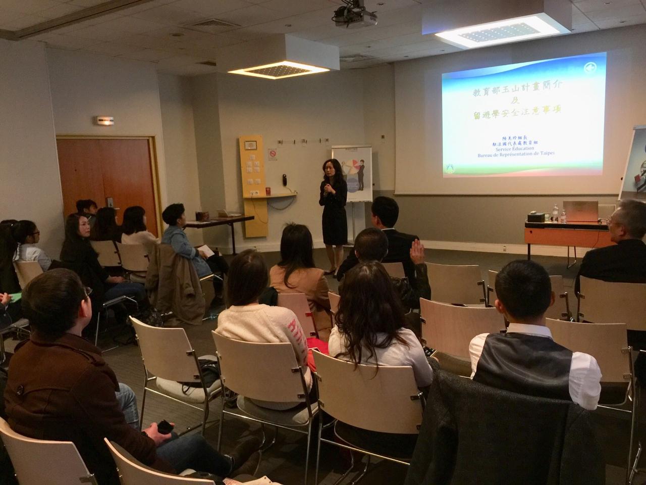 教育組陸美珍組長介紹教育部玉山學者攬才計畫及留學安全注意事項