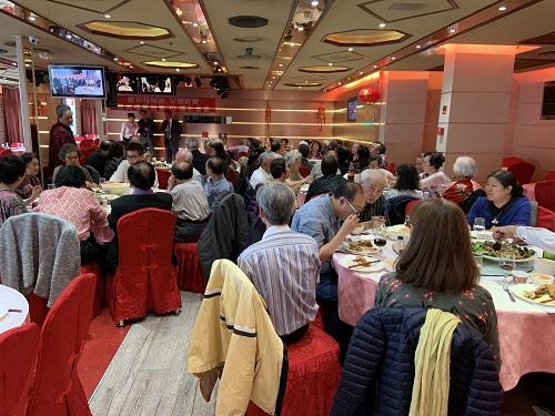 慶祝餐會在詹總會長及羅分會長領唱會歌以及主持摸彩節目下熱烈進行,與會鄉親彼此熱絡交流,氣氛愉快,展現僑社團結和諧之凝聚力。
