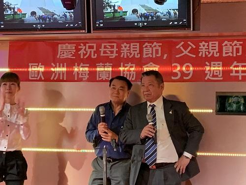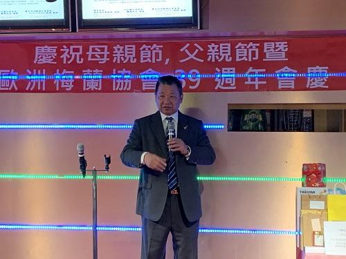 「歐洲梅蘭協會」總會於6月9日中午在巴黎第十區中國城餐廳舉辦「慶祝母親節、父親節暨三十九周年會慶宴會」活動,駐法國台北代表處由新聞組鄭弘基副組長及領務組郭心玲副組長代表吳志中大使出席盛會,與「歐洲梅蘭協會」總會長詹致遠名譽教授(僑務諮詢委員)、巴黎分會會長羅強與羅亞爾河地區分會會長Patrick Costiou教授、僑務委員施龍、僑務促進委員鄭蓓斐、僑務諮詢委員陳廣城夫婦、中華會館丁偉星主席(前僑務委員)及何福基等僑務榮譽職人員及僑界領袖等約60位旅法鄉親同聚一堂,感謝父母慈恩及歡祝會慶。