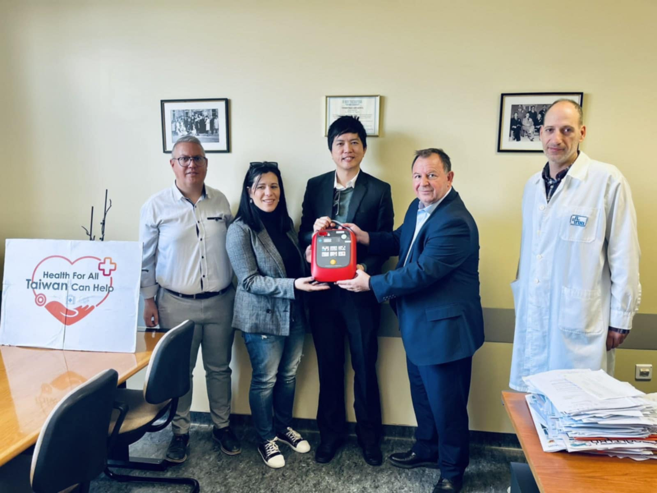 駐希臘代表處本(11)月11日代表台灣赴希臘偏鄉帖斯普羅提亞(Thesprotia)地區捐贈當地醫療機構所需的自動除顫器(AED),展現「台灣幫得上忙」(Taiwan Can Help)、願向國際社會作出人道貢獻的正面形象與意願。